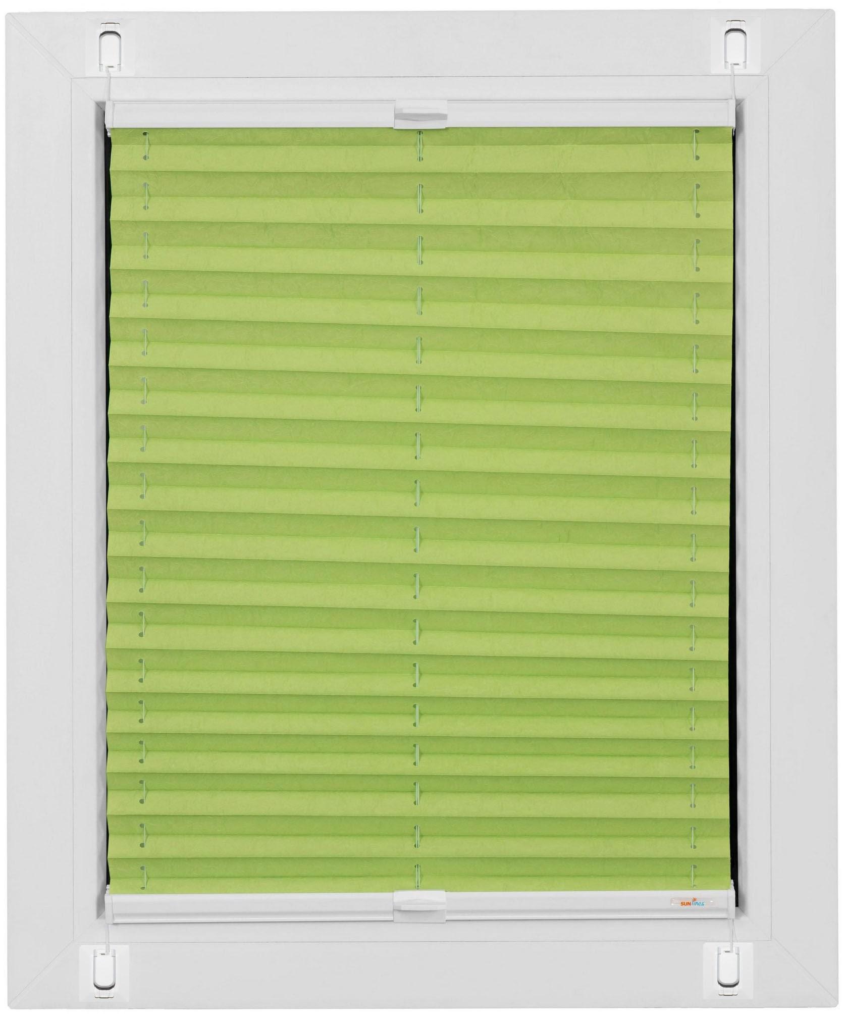Plissee SUNLINES "Start-up Style Crush", grün (apfelgrün), B:75cm H:75cm, Obermaterial: 100% Polyester, Plissees, Plissee, geklebt mit Gelenkklebeplatte