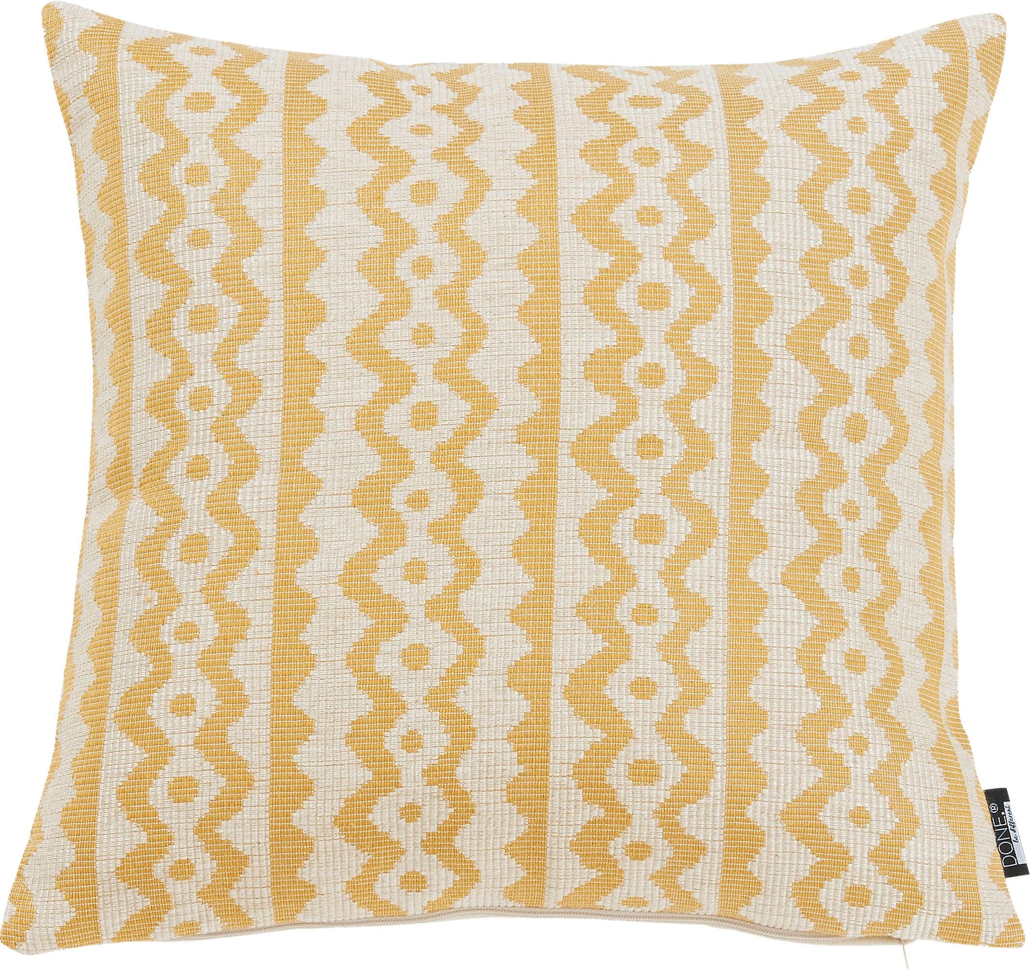 Dekokissen DONE. "Lidia", gold (goldfarben), B:45cm L:45cm, Baumwolle, Leinen, Viskose, Dekokissen_Sitzkissen_Kissenhüllen, Dekokissen, Jacquardgewebte Kissenhülle ohne Füllung mit Leinenanteil, 1 Stück