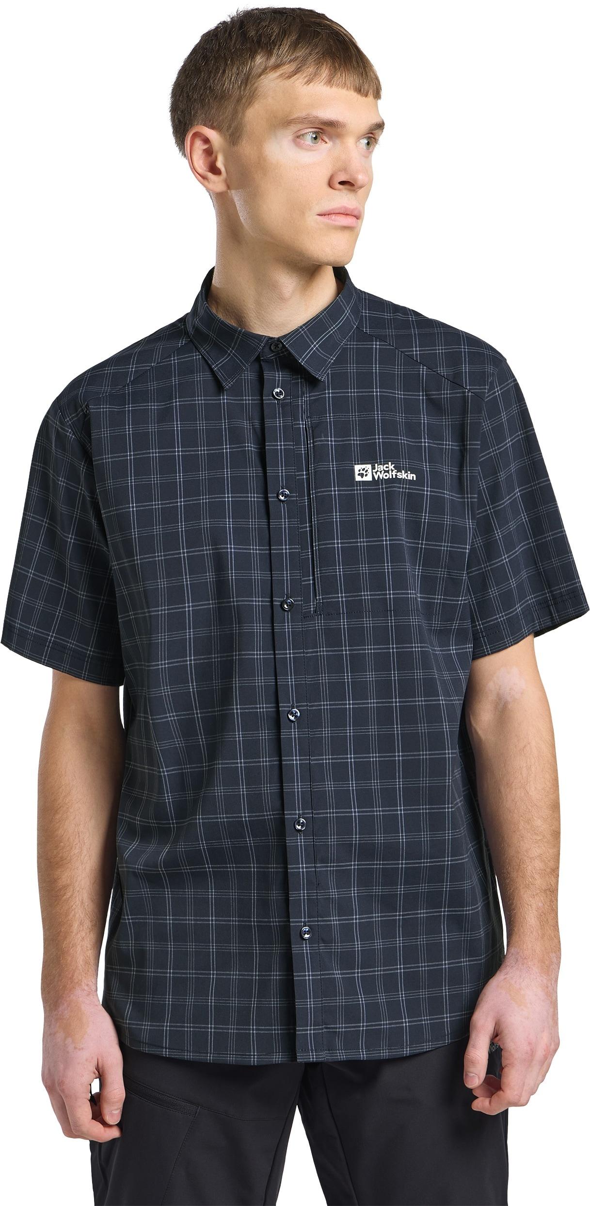 Funktionshemd JACK WOLFSKIN "NORBO S/S SHIRT M", Herren, Gr. S (48), Normalgrössen, blau (nightblau, checks), Obermaterial: 95% Polyamid, 5% sonstige Fasern, Hemden Funktionshemd