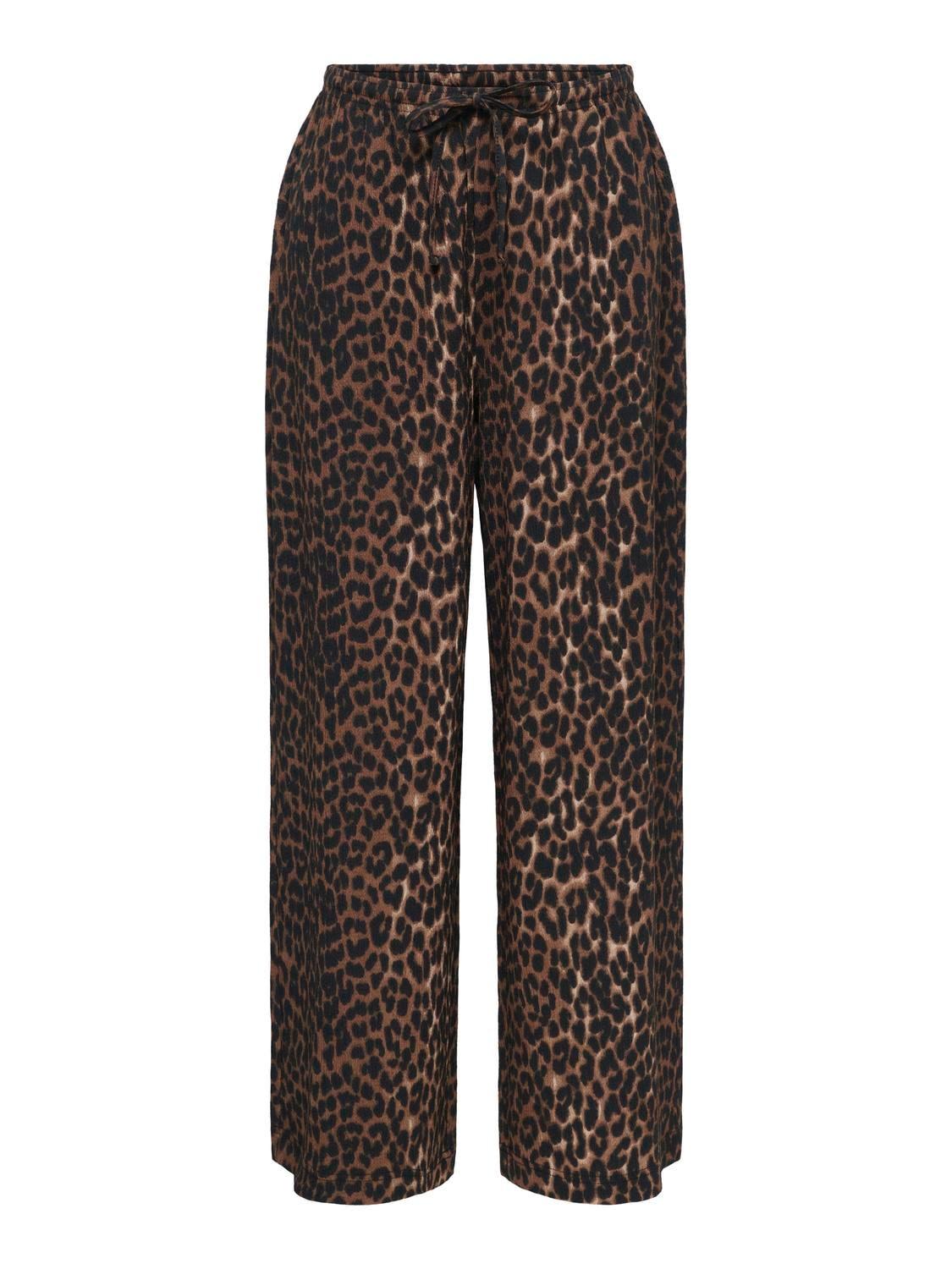 Schlupfhose ONLY "ONLALTA MW STRING WIDE AOP PANT PNT ZLO", Damen, Gr. XS, Länge 32, schwarz aop:leo, Web, Obermaterial: 98% Polyester, 2% Elasthan, bedruckt, lang, Hosen Schlupfhose