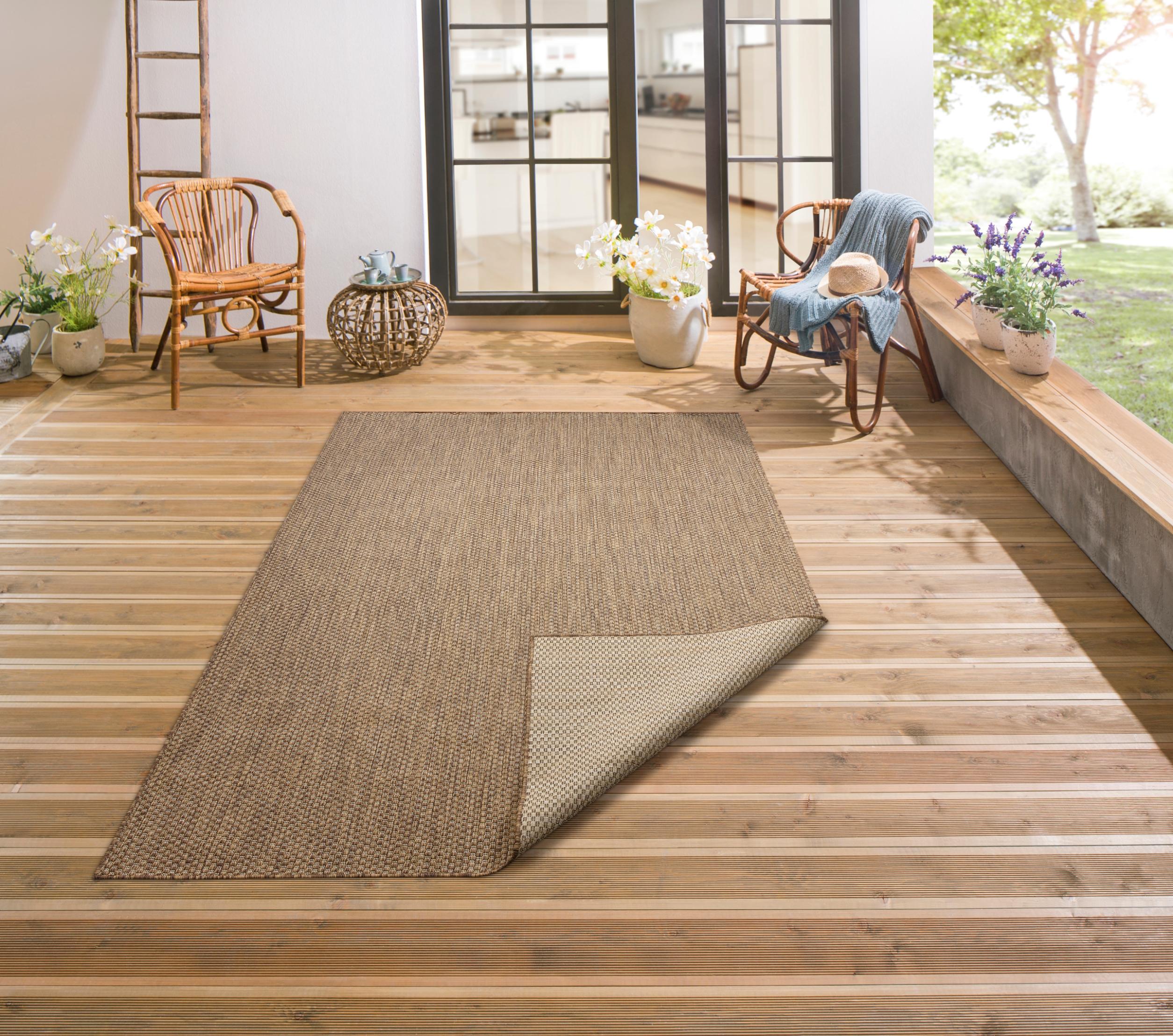 Teppich MY HOME "Rhodos, In-und Outdoor geeignet" Gr. 2, gold (goldfarben), B:70cm H:3mm L:140cm, Kunstfaser, Teppiche, Teppich, Sisal-Optik, Wetterfest & UV-beständig, Wohnzimmer, Balkon, Camping