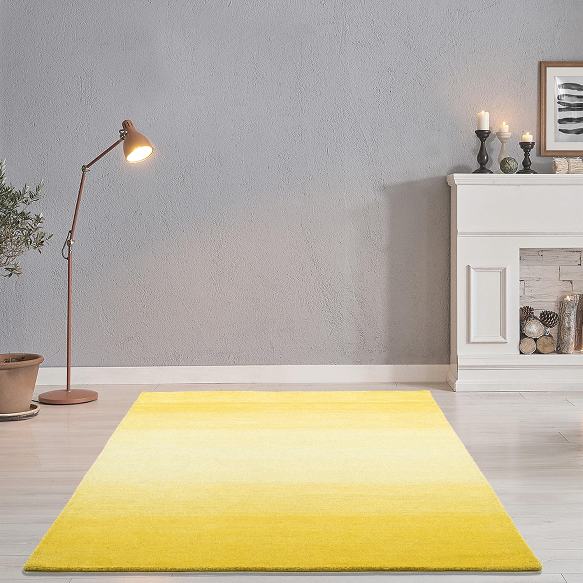 Wollteppich THEKO "Wool Comfort", gelb, B:70cm H:15mm L:140cm, Schurwolle, Teppiche, Wollteppich, Handweb Teppich, reine Wolle, handgewebt, brilliante Farben, Scandi