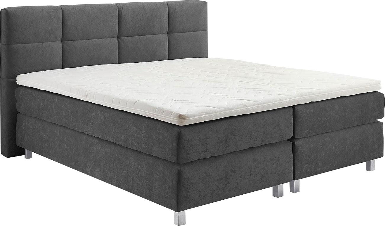 Boxspringbett, grau (anthrazit), B:195cm L:210cm, Bezug: 100% Polyester;Polsterung: 100% Polyester, WESTFALIA SCHLAFKOMFORT, Komplettbetten, Boxspringbett, wahlweise mit Kaltschaum-Topper